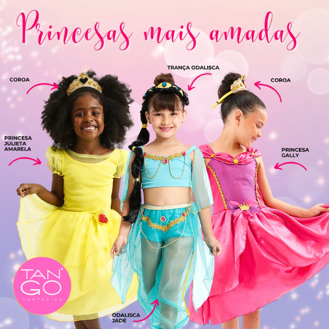 Libere a imaginação da sua pequena com esta encantadora Fantasia Princesa Cabelos Dourados Infantil Luxo Brilhante, perfeita para quem sonha com aventuras em torres altas e histórias mágicas. Com design inspirado em uma das princesas mais sonhadoras dos contos de fadas, o vestido combina tons suaves de rosa e lilás com detalhes dourados que trazem um toque real ao visual. Destaques do produto: • Corpo confeccionado em malha leve e brilhante, com ajuste confortável ao corpo e toque macio.• Recorte frontal com acabamento em galão dourado e fitas...